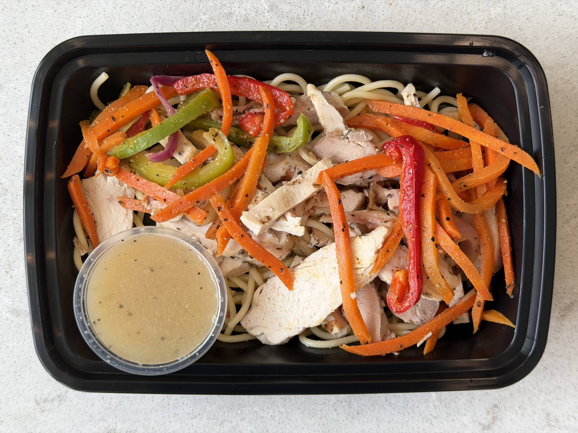 Cooked Chicken, Spaghetti Pasta, Carrots, Peppers, Onion, Side of Masala Sauce